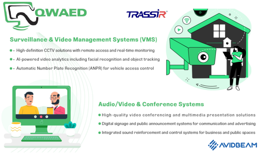 Qwaed Technologies is a trusted TRASSIR Partner in Saudi Arabia, delivering cutting-edge AI-powered surveillance solutions. With TRASSIR’s global expertise in analogue & digital video systems, we provide smart, reliable, and future-proof security. Our portfolio includes high-definition cameras, video recorders, VMS/CMS software, and advanced analytics. From facial recognition to motion detection, we help businesses enhance safety and operational control. Together with TRASSIR, we secure industries with scalable, intelligent, and affordable solutions.